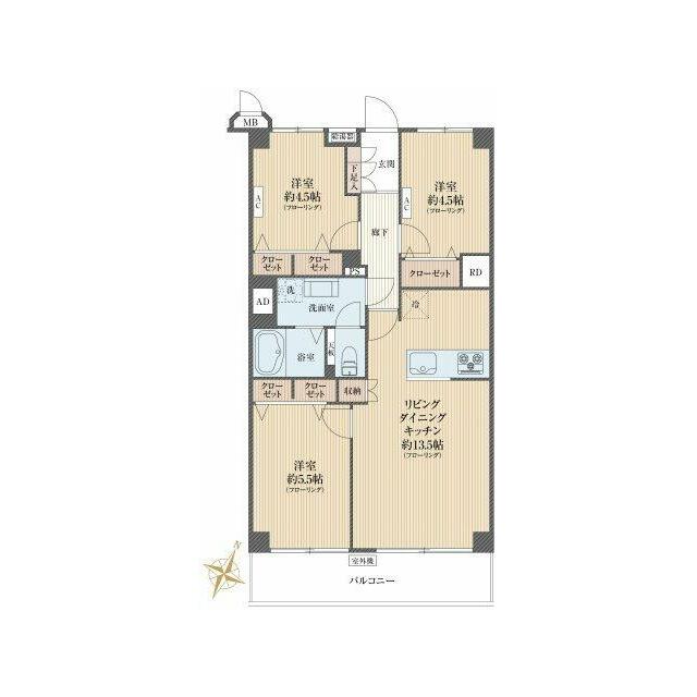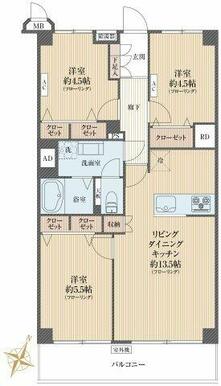 | 間取り(内訳) | 3LDK(LDK13.5、洋5.5、4.5、4.5) | ||
